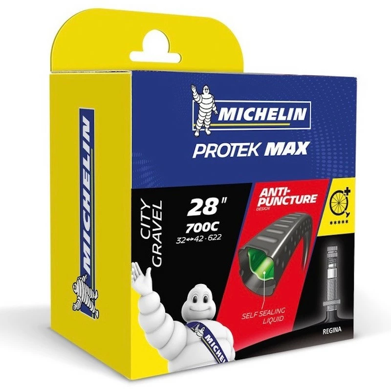 Camera d’aria Michelin per un’eccezionale sicurezza contro le forature anche in caso di tagli grazie al liquido antiforatura integrato, realizzata nella nuova forma che ne facilita il montaggio