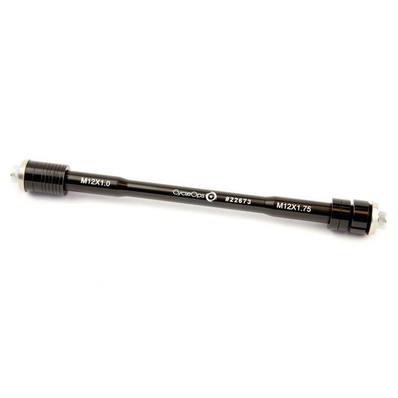 Perno passante per l’utilizzo con Home Trainer che si adatta alla maggior parte dei perni passanti 12x142mm e 12x148mm, comprensivo di rondelle, tappi terminali con viti e un corto tubo scorrevole